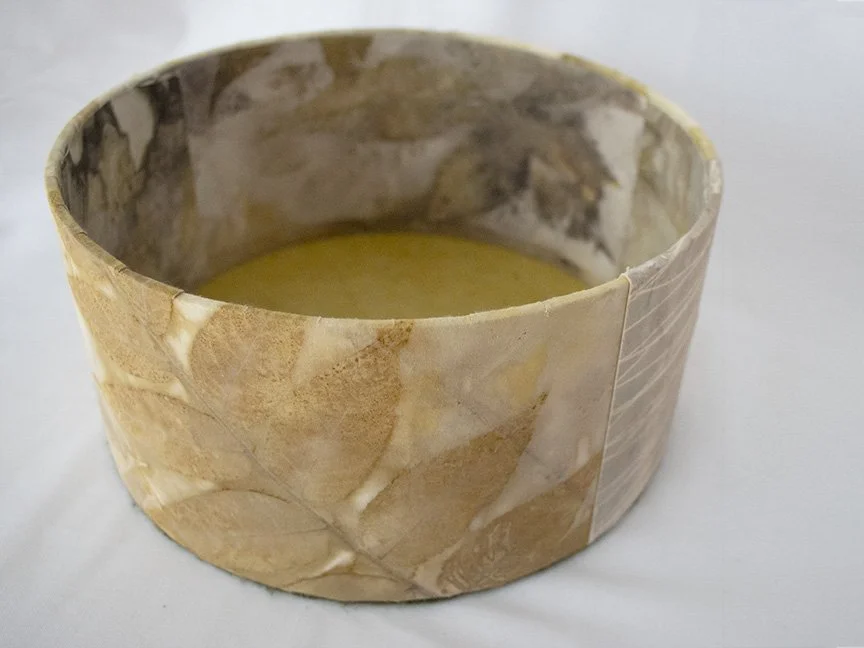 I was part of a group of book artists who met at the studio of Marilyn Zorando in Portland, OR. This was the last session before I left. The structure was created by Marilyn in that she bought shipping containers and cut them with a special machine into the pieces we all needed to make these boxes. I made the eco printing and put the box together.